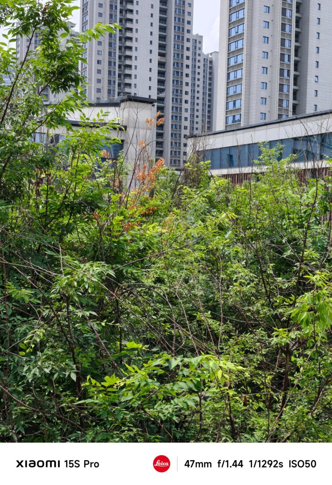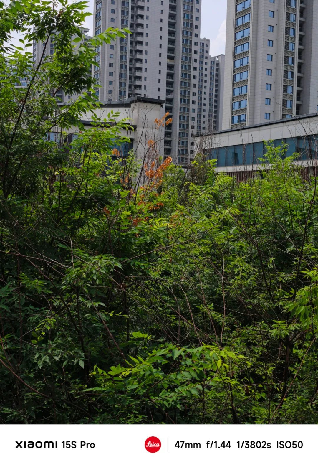 我們繼續看樣張,發現拉曝光這事兒還真不是偶然。在這組明暗對比比較強烈的樣張裏,小米 15S Pro 的樹葉依舊是曝光拉的很高,樹葉甚至有點糊作一團了。