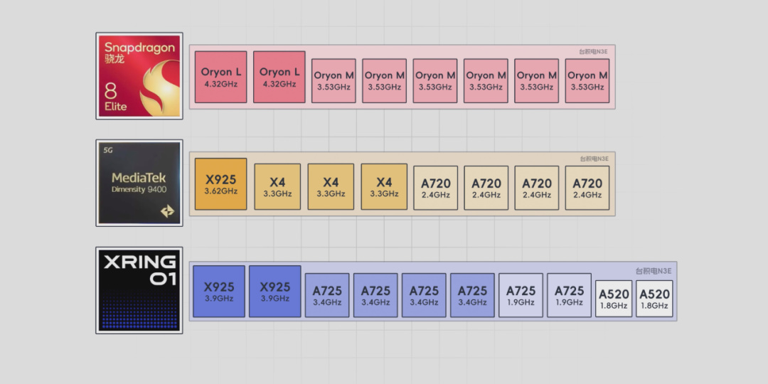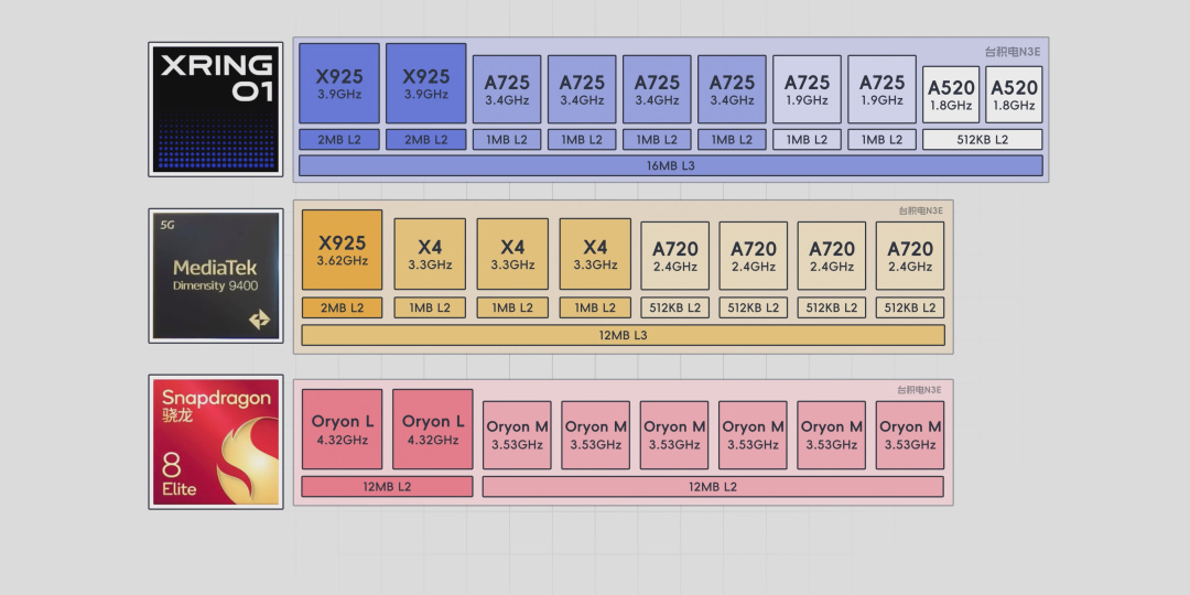 這回跟着小米 15S Pro 和小米平板 7 Ultra 一起來的這顆芯片,喫上了臺積電最先進的 N3E ,也就是第二代 3nm 工藝,並且 IP 全是 ARM 最新的 V9.2 架構,全都是好東西。