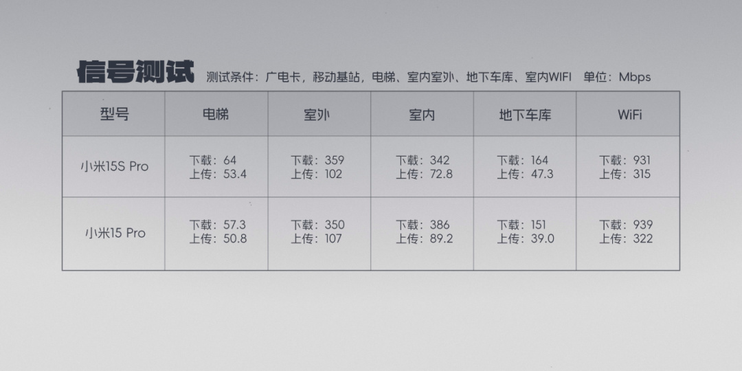 然後,有的小夥伴可能已經知道了, 這次小米 15S Pro 的基帶是外掛了聯發科的 5G 基帶,爲了搞清楚信號和功耗有沒有拉胯,我們也跟小米 15 Pro 對比測試了一下網速和續航( 5G 網絡下 )。