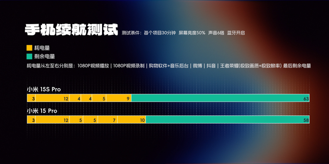 而從 5G 環境下的 3 小時續航測試結果來看,15S Pro 的續航表現居然要比15 Pro 更好。雖然說影響續航的因素還很多,但這樣看來 15S Pro 的外掛 5G 基帶,並不會拖續航的後腿。