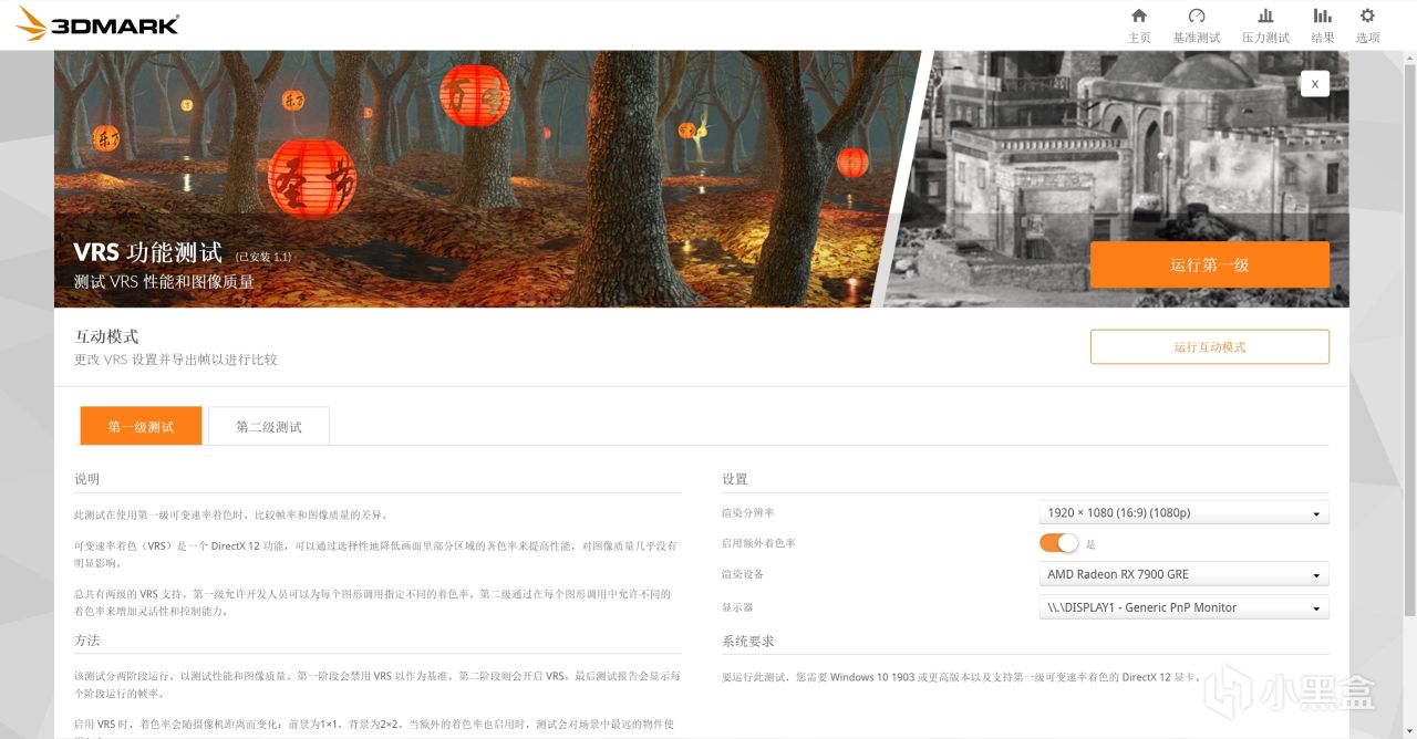 16.VRS功能测试,对比开VRS技术和不开VRS技术对游戏性能与画质的影响,可以对比开启与关闭的帧率,画质