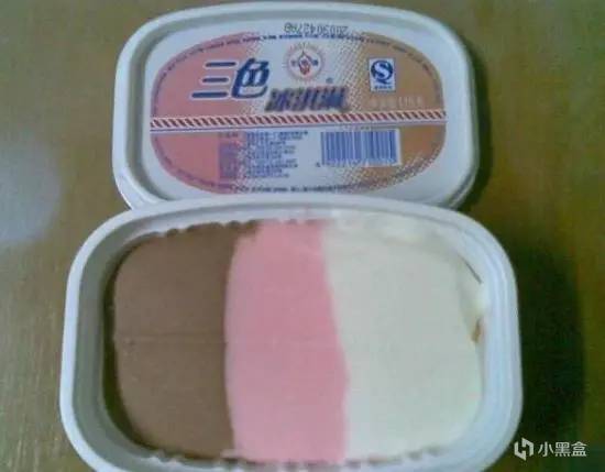三色雪糕是一個塑料盒子裝着的,一次可以喫到三種味道,巧克力,草莓,香草。