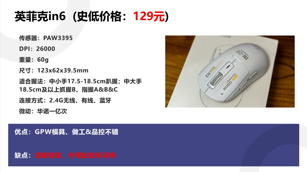 有G102的平替自然也有GPW的平替,那就是英菲克IN 6,