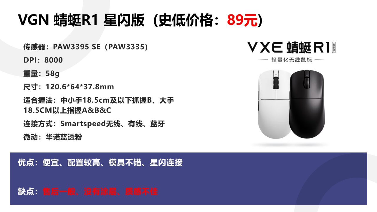 除了毒蝰V3模具,在這個價位喜歡抓握高背模具的可以看看兩款鼠標,分別是蜻蜓R1星閃版,和漫步者G1M。