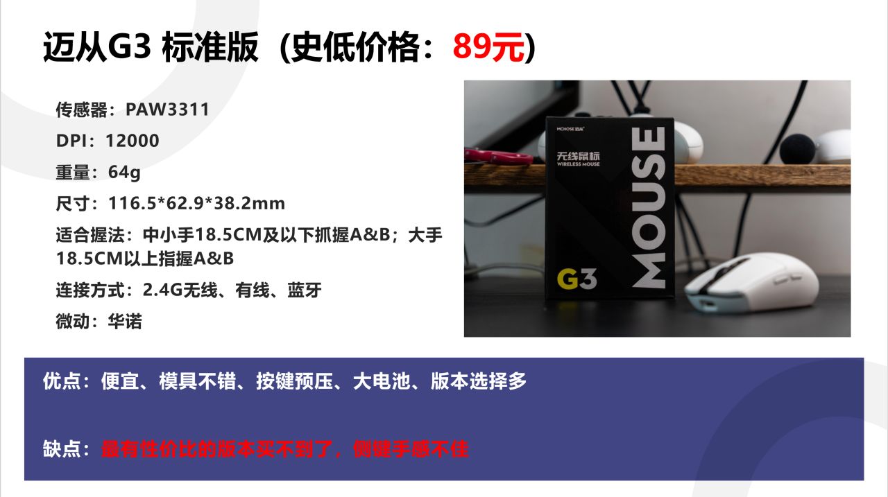 百元價位還有一款邁從G3,這款就是純純的羅技G102和羅技G304的完全上位替代。