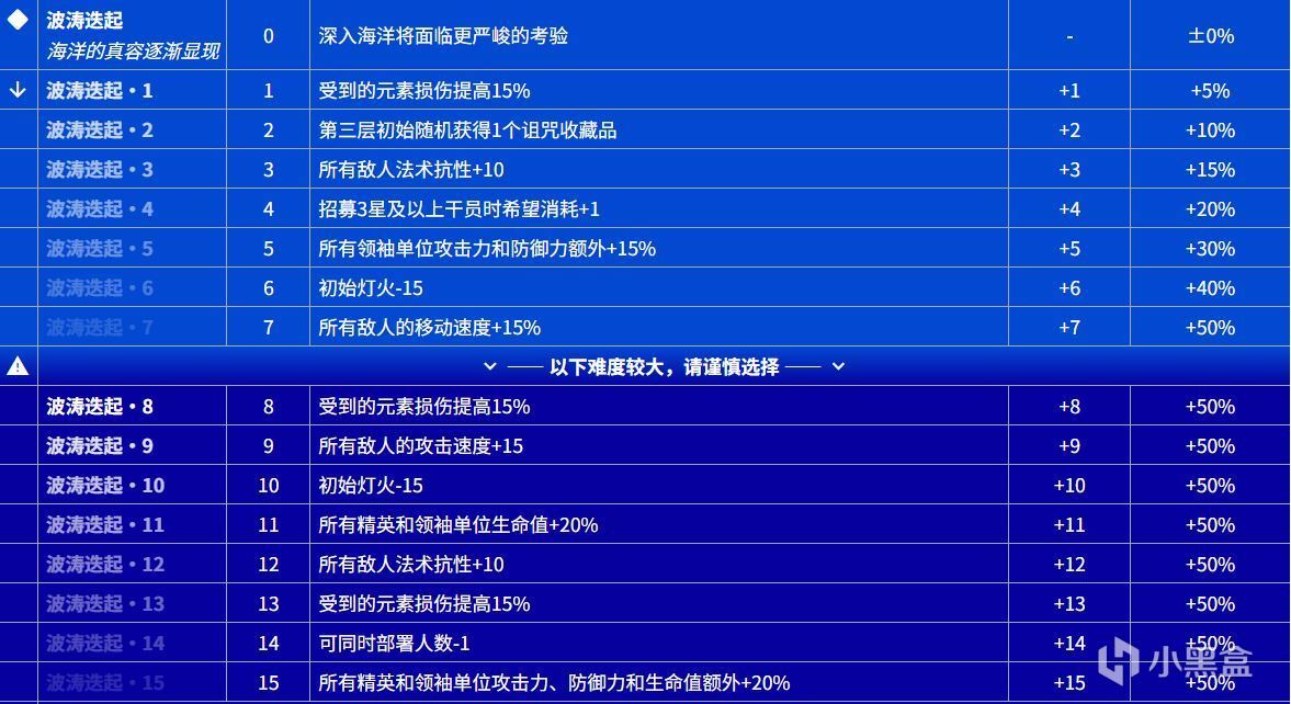 1)大改難度分級,將之前只有三檔(簡單、普通、困難)的難度分級改成了殺戮尖塔式的整整15級難度分級,隨着等級提高不斷提升數值或增加負面機制。更爲詳細的難度分級確實使數值曲線更爲平滑,也提升了深度。但水月肉鴿這個N15的難度分級還處於非常原始的水平,比如從N4起三星及以上所有幹員希望+1,某種意義上與肉鴿鼓勵使用低星幹員的設計相悖了。而且數值控制也沒有細究,N15失控的宿主因爲只加血量不加扣血速度幾乎變成了設計災難,關底BOSS人均70法抗高難90法抗的設計使得法傷幹員集體下班,敵方精神損傷跟攻擊走導致幹員的精神損傷條掉得比抽水馬桶都快,行醫奶都奶不過來。不過詳細分級是思路是正確的,後續的版本中也進行了保留和優化。