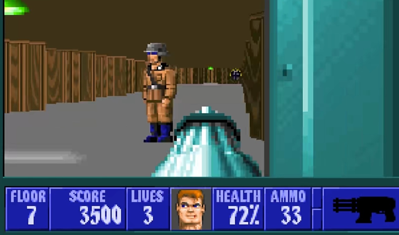 遊戲中同樣還能發現一款叫“荒板塔3D”的遊戲,這畫面這操作,簡直跟1993年的德軍總部3D一模一樣