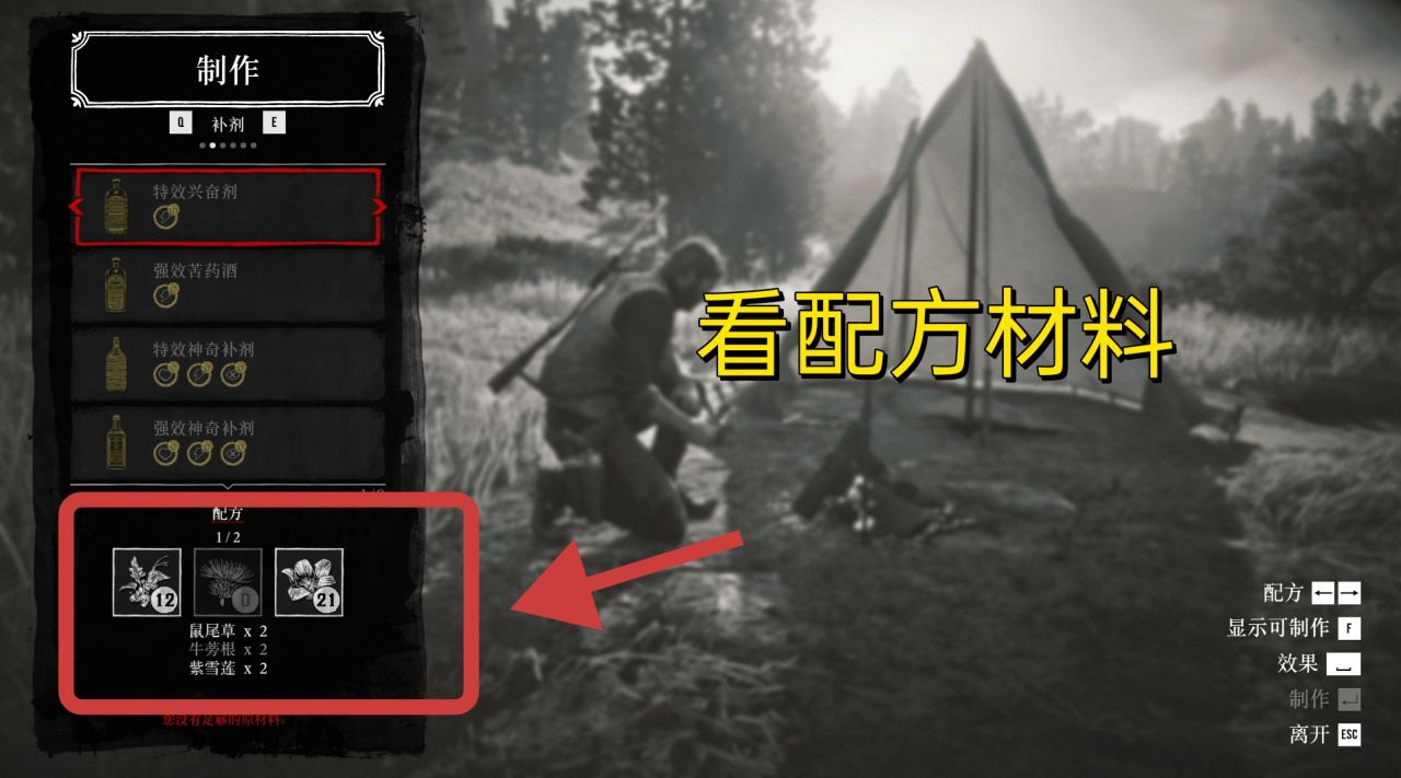 紮營製作裏有一個特效興奮劑,但是遊戲裏沒有這個配方,實際上該配方是特效苦藥酒,應該是r星翻譯錯誤。配方位置在歐萬吉拉湖大壩,往高樹管制區域路上,左邊懸崖有個陷阱馬車,旁邊有個箱子裏。