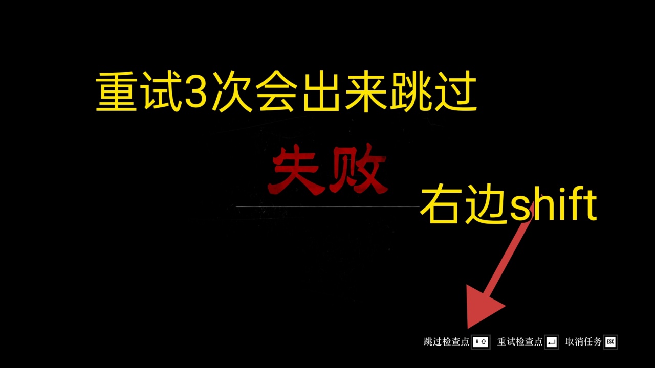跟隨達奇下樓到門口時,會卡死閃退。解決辦法就是,故意失敗跳過檢查點,不影響金牌。