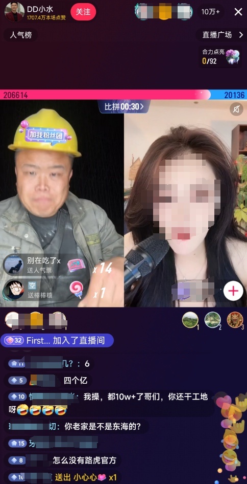 現在迴歸工地賽道,數據立馬起來了。白天工地幹活,晚上直播PK。