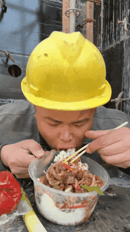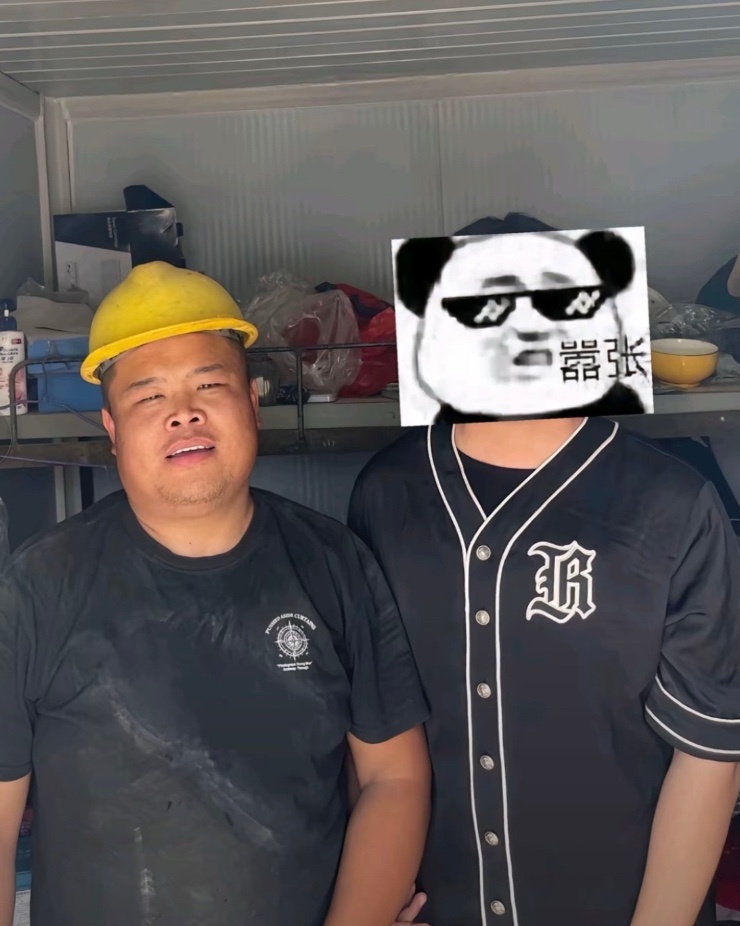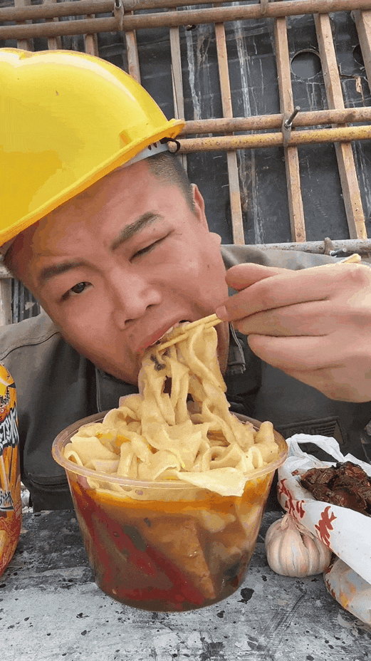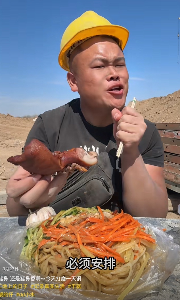 炸醬麪配豬鼻子,工地背景就是豪橫。