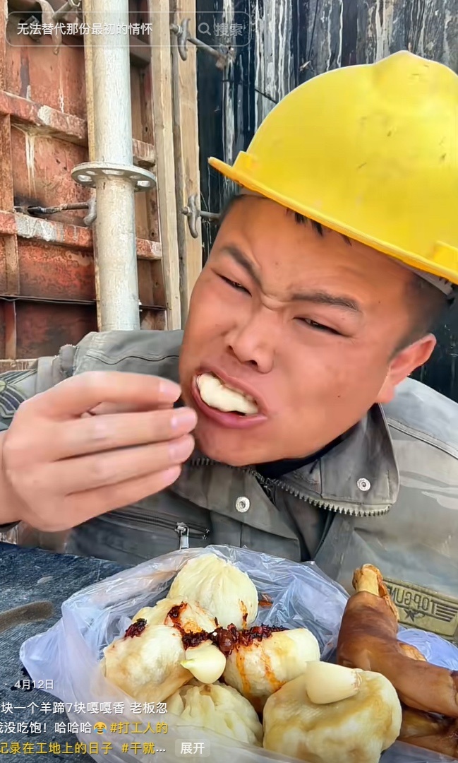 直到我在某音上刷到一位專門記錄自己在工地三餐的博主@DD小水 ,食慾蹭的一下就起來了。