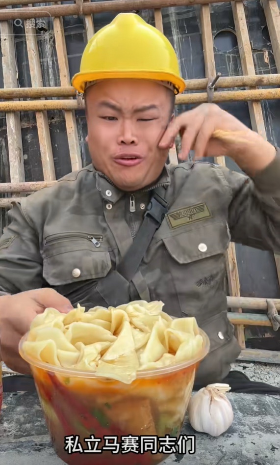其實水哥是個“老網紅”了,幾年前就是憑藉拍工地飯菜火了,視頻裏都要來句“私立馬賽”。