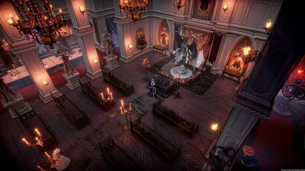 大體佈局和教堂區其實是遙相呼應的,白雕像對應黑雕像,天使位置對應王座位置(雖然這張圖看不到王座。得益於這遊戲視角總感覺有層濛濛的霧,離遠了更是啥也看不見,坐在王座上基本看不見下面在打啥。