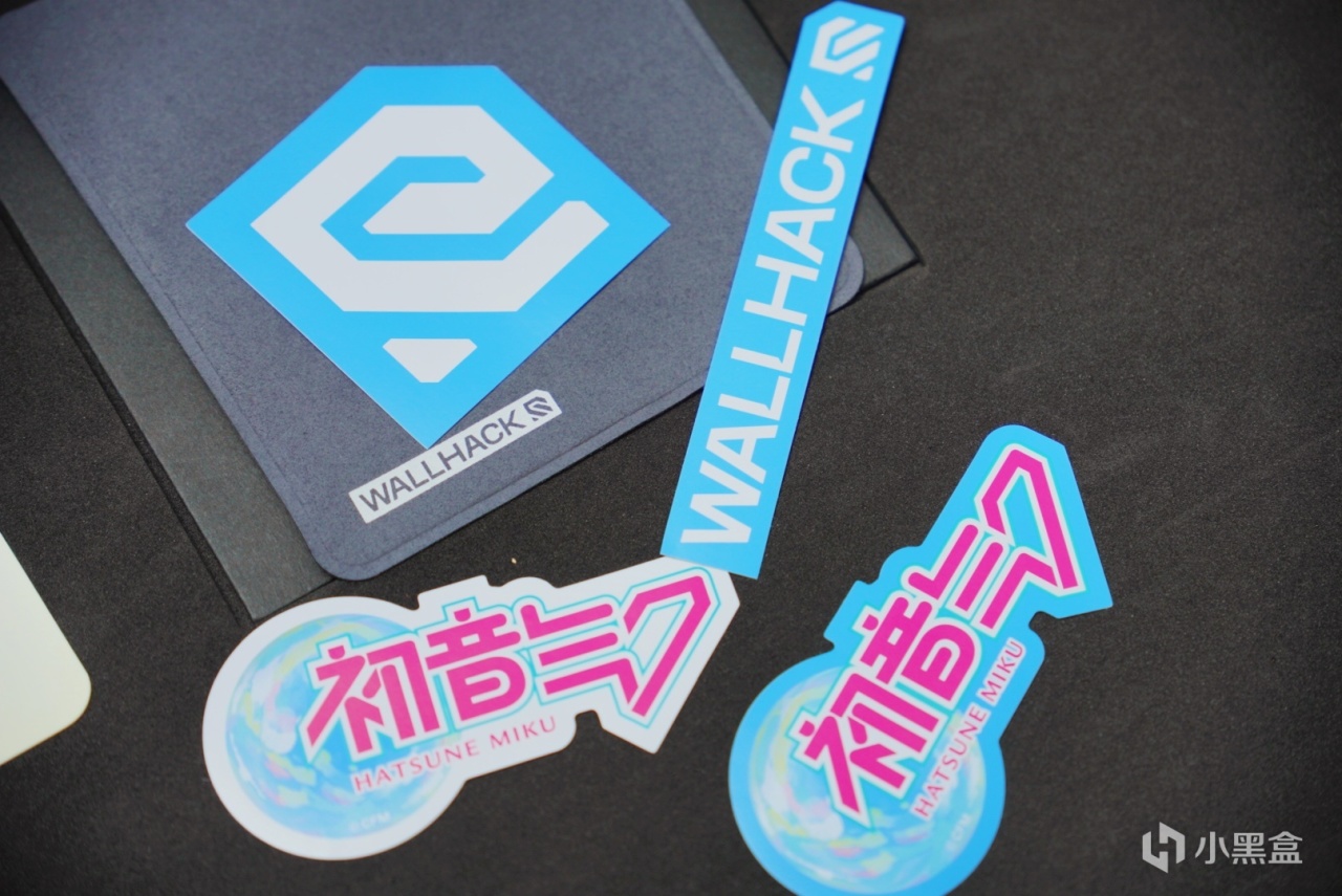 配件方面则是除了一个大的磁吸收纳,还有一个擦拭布以及wallhack蓝白配色的贴纸与初音未来的贴纸