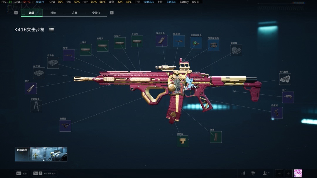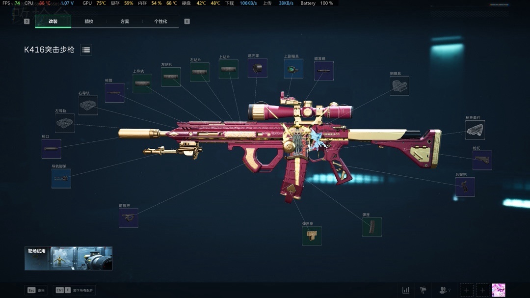 K416作爲元老級步槍,31的基礎傷害與880的高射速卻被M995壓下了所有的優點,子彈的缺陷讓K416起落不定,這次的更新卻讓我發現了K416。