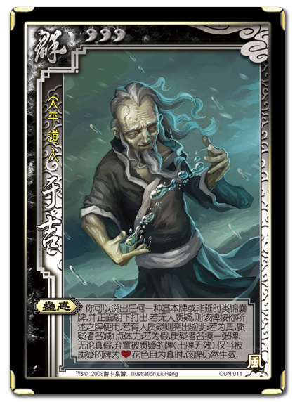 當時最喜歡玩的武將是于吉,“蠱惑”這種賤賤的騙人技能很有意思;而對方上當被給上“纏怨”後更是我自鳴得意不已。