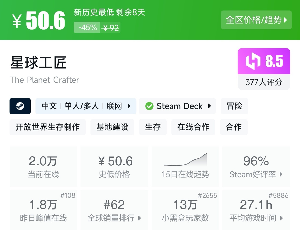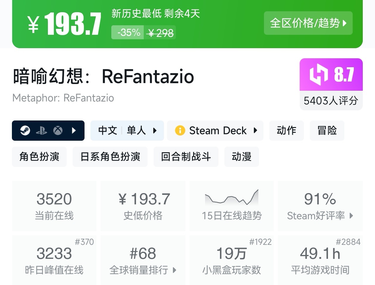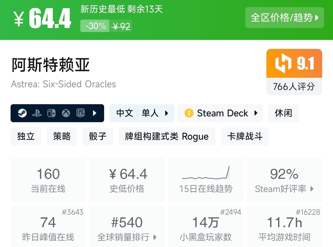 大家好,没错,又是我,你们的老朋友亦然,转眼又要到新的一周,最近Steam打折的游戏很多,可以说不仅力度大,并且范围广,其中新史低游戏更是很多很多,其实新史低的游戏买起来最有安全感,因为在很长一段时间内不会更低,老规矩,我将为各位进行一个汇总,希望我的汇总,能够帮助各位盒友挑选心仪的游戏。