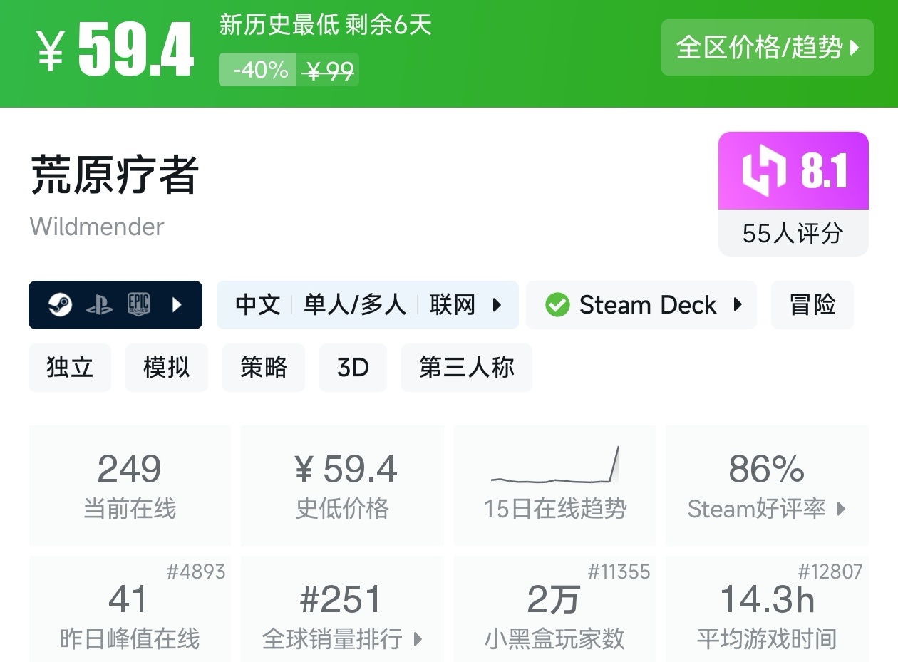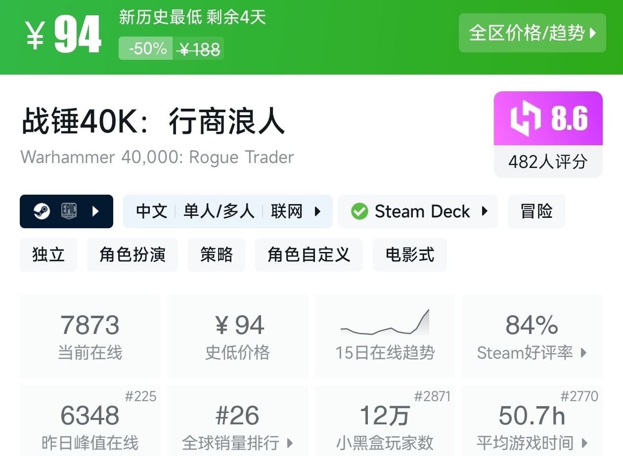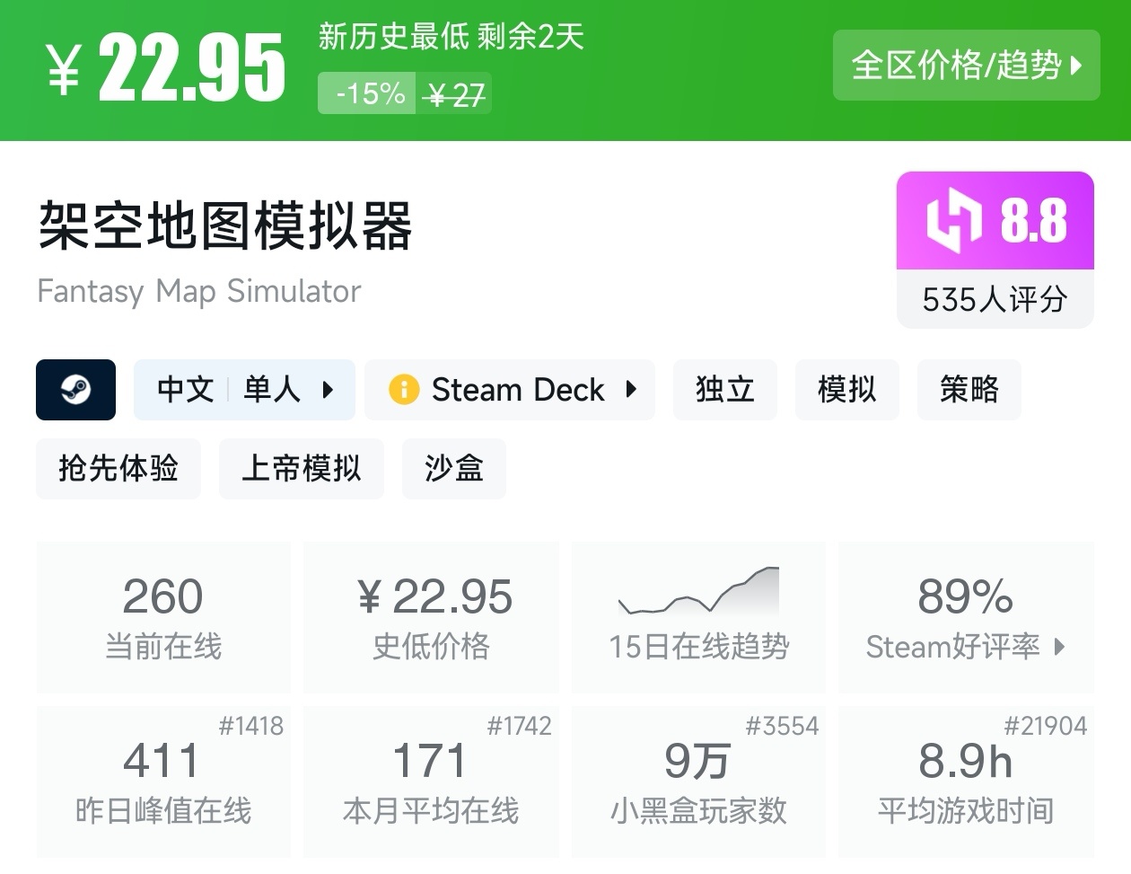 大家好,没错,又是我,你们的老朋友亦然,转眼又要到新的一周,最近Steam打折的游戏很多,可以说不仅力度大,并且范围广,其中新史低游戏更是很多很多,其实新史低的游戏买起来最有安全感,因为在很长一段时间内不会更低,老规矩,我将为各位进行一个汇总,希望我的汇总,能够帮助各位盒友挑选心仪的游戏。