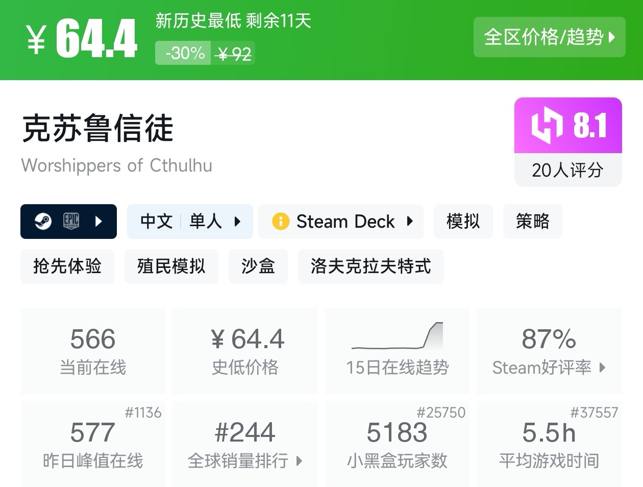 以上就是这期的折扣汇总,几乎涵盖了最近所有的新史低游戏,足足用了我一个小时。