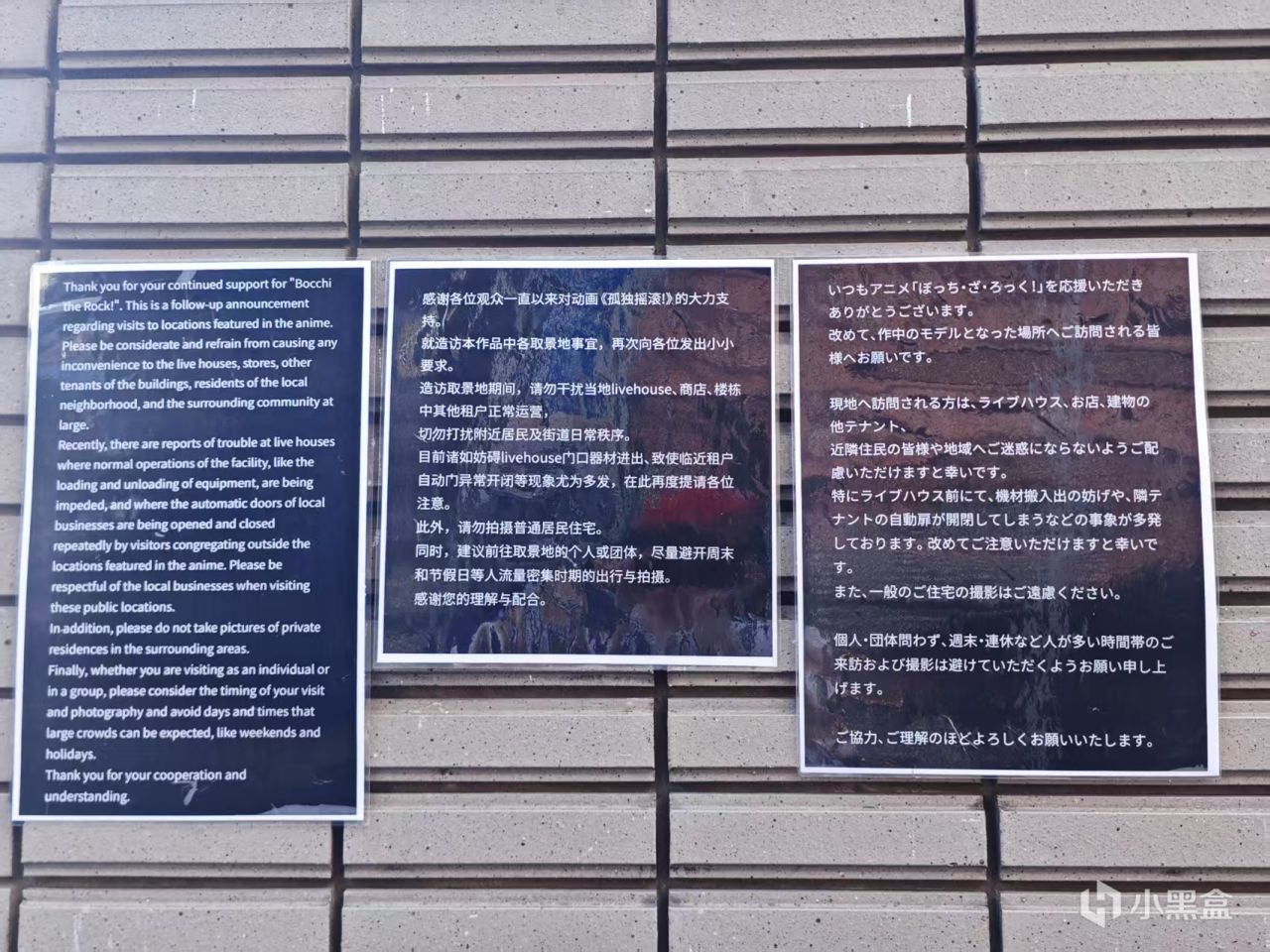 需要注意的是动画里面的livehouse在现实中是营业的,所以需要注意不要打扰到别人正常生意,最后这张多语的提醒告示有点没绷住。