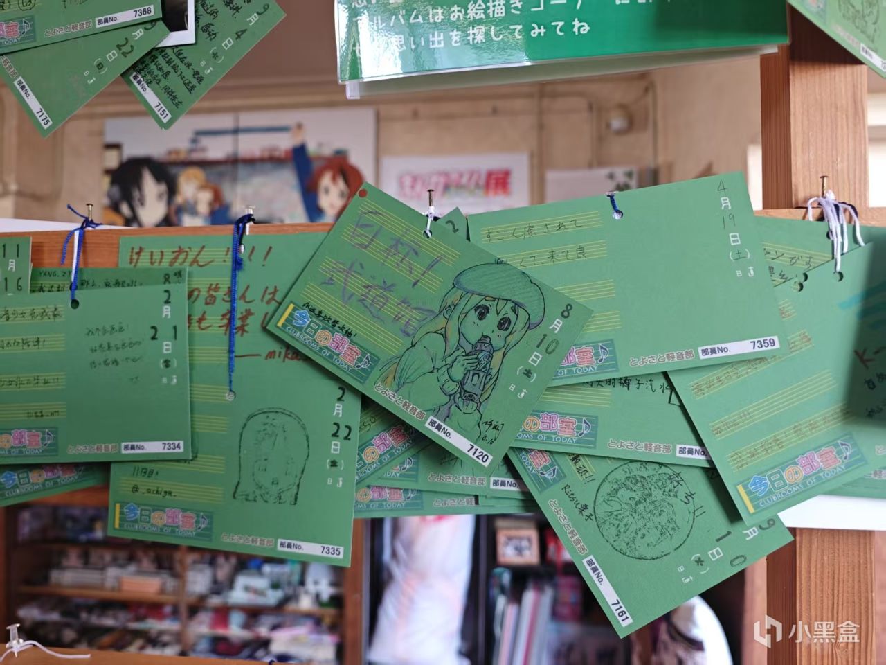 三楼的纪念教室被布置的特别让人感动,不管是钢琴上的相遇天使的琴谱、放学后teatime的甜品、还是各种名场面照片都勾起了各种美好的回忆;最后当然是整个大黑板,上面由来自世界各地的来巡礼的轻音粉丝的留言、看着真的让人特别感动(出现最多的一定是轻音永不毕业的留言)