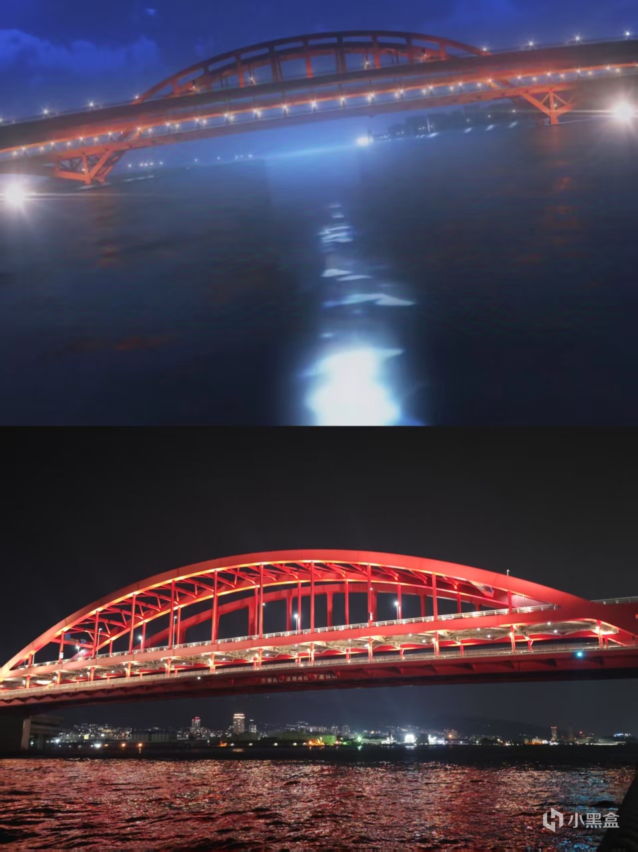 晚上吃饭之后直奔最终目的地——刻印在月球人脑中的神户大桥(PS:坐“新交通港湾人工岛线”建议在码头客运站下车 这样直接沿着桥走到对岸的北公园就有对应机位了);今日的冬木市依旧很是和平、不过并没有碰到属于我的身披黄色雨衣的女主角(下面图二和三是对比图)。