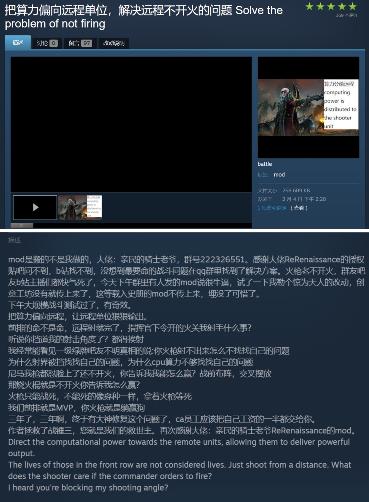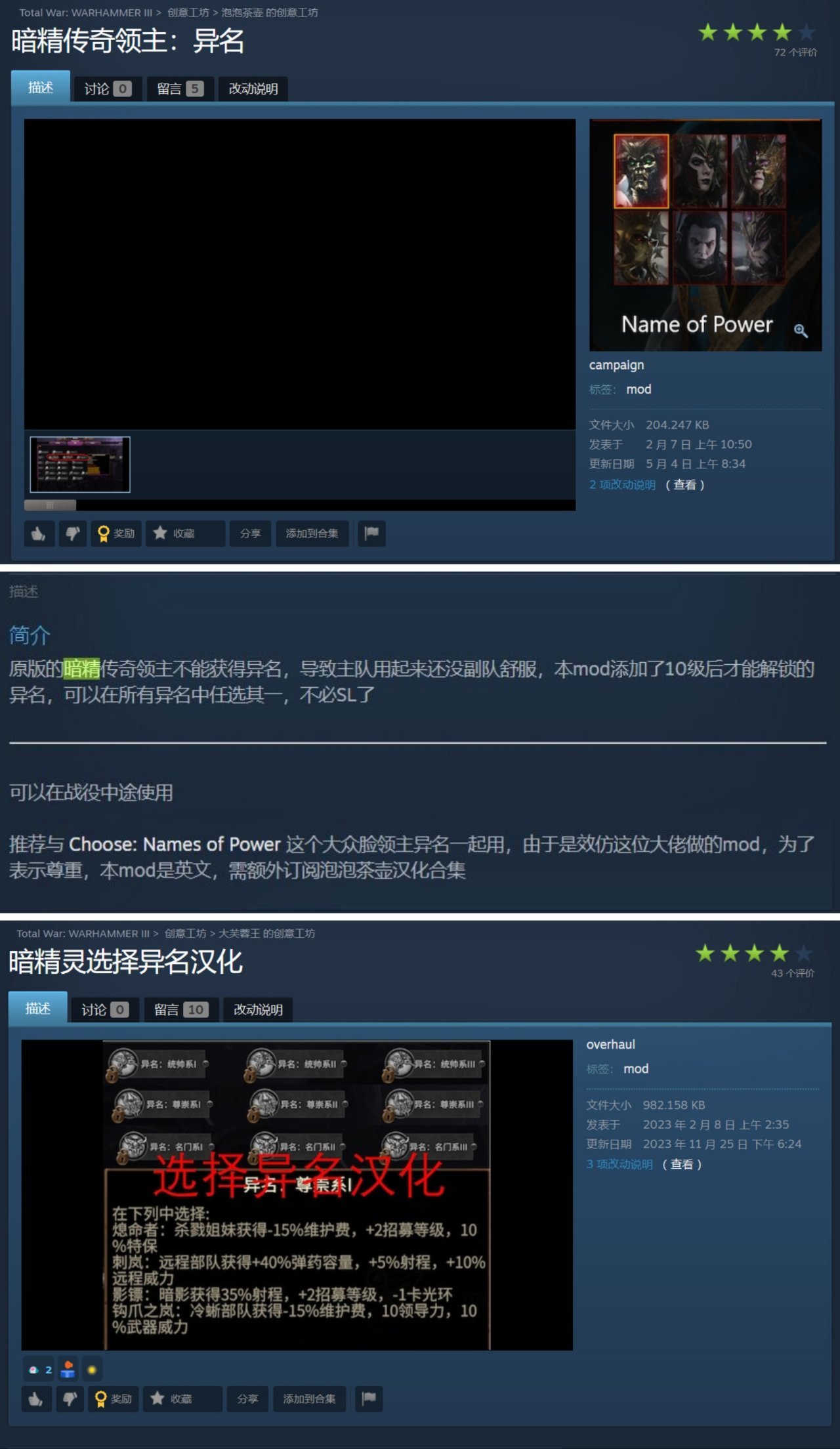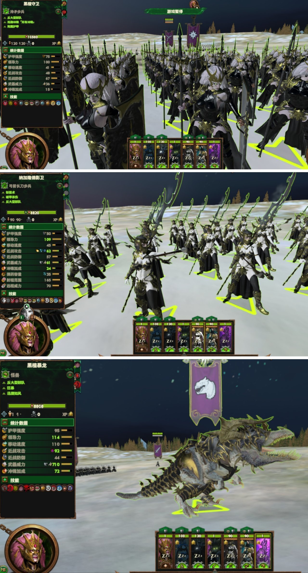 综上所述,这几个MOD所有种族都适用。可以让《战锤3》变成传统《全面战争》那样的排兵布阵,打的有来有回的战略游戏。不过这么做对巨兽、巨怪和法师或单体报团就不太友好😅。凭自己喜好游玩吧。