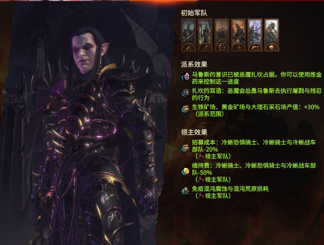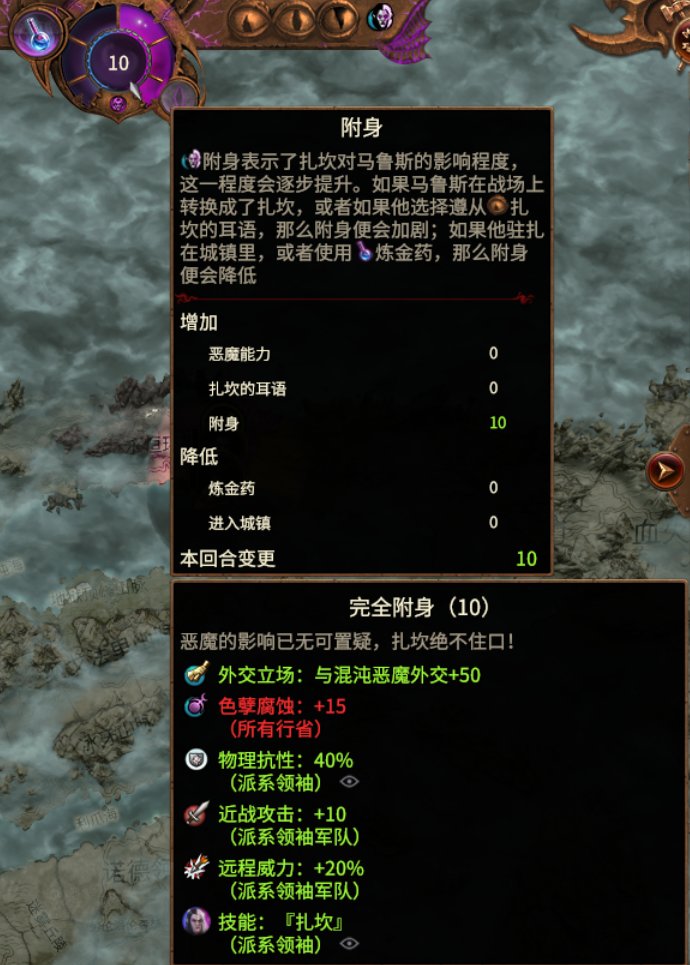 开局就是被扎坎占据的形态。如果越是小马哥本人形态,派系加成就越多,但是自身实力会会大打折扣。相反的,扎坎越多,实力越强,色孽腐蚀就越多😂(色孽腐蚀会爆发叛乱,很搞人心态。)