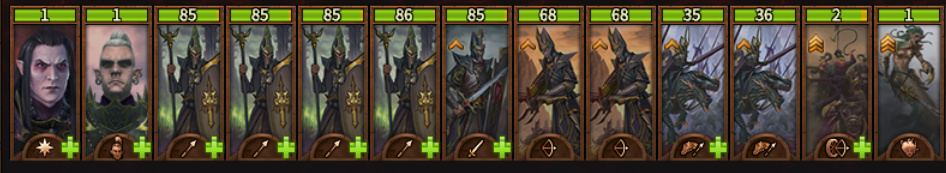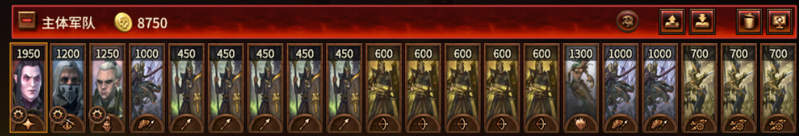 盾矛换黑卫,抗线更持久,远程换巨剑弩,加入末日火术骑。这个时候就不用抗射体系了,暗精菜刀队。
