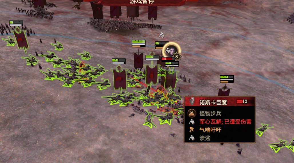 因为我也加了步兵MOD的关系,混勇变得级抗揍,不少战损都是被混勇耗死的😰我的骑兵只能背袭来施加冲锋伤害,好在可以顺利斩将后拉走,不然靠原版拉垮的骑兵早就全军覆没了。龙魔、巨魔这种数据不变的单位就吃亏咯😂