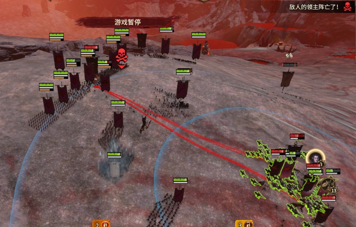 就这样一直冲锋和拉回,冲散步兵,然后包围敌方领主,连弩在后面跟着着输出。
