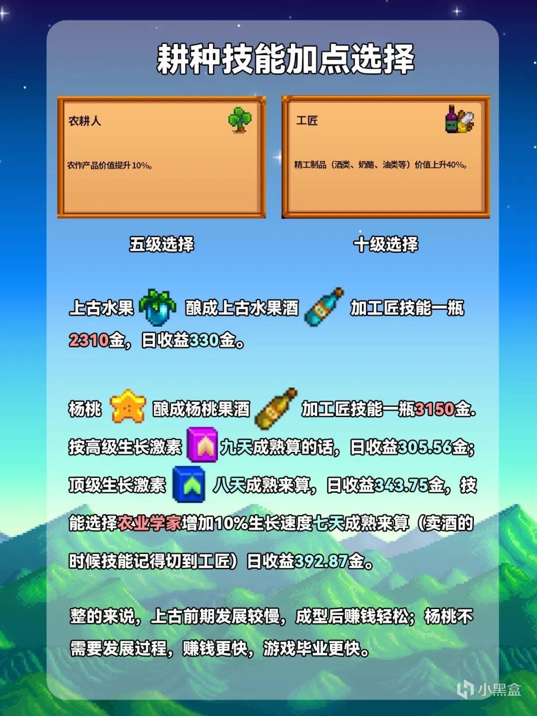 很多新手農民開局搞到古代種子不知道有什麼用,覺得是個種子,但又不能種下去,其實它是件古物可以捐贈到博物館,領取一個上古種子和上古種子製作配方,比種子製造機靠概率獲得更輕鬆,(1.6.3版本前旅行貨車是有概率售賣的),28天成熟(高級生長激素21天)成熟後,七天可以收穫一次,跟釀酒七天剛好搭配,唯一的缺點就是前期發展較慢,但是成型後帶來的收益是非常可以的,而且輕鬆省事,釀酒流的終極作物!