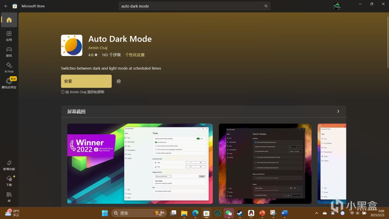 文章的最后提供软件下载的方式,可以在github上搜索Auto dark mode,顺便一提该软件也上架了微软商店,也可以直接搜索下载。