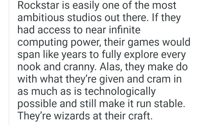 Rockstar絕對是最敢想的遊戲公司之一。如果給他們無限的計算資源,他們的遊戲地圖怕是能塞進需要花好幾年才能探索完的細節。但現實中,他們只能在現有硬件條件下瘋狂堆料,還要保證穩定運行。這幫人簡直是技術巫師。