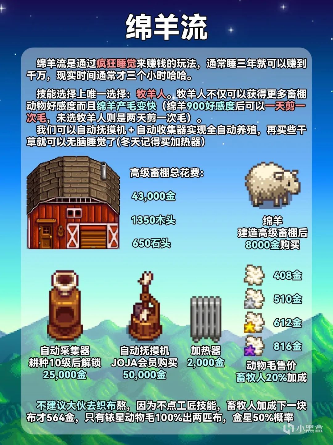 养殖流也是广受欢迎的一种玩法,一般是绵羊流和养猪流两个流派,也考虑养鸡流,稍微差一些!这里简单总结了一下个人的一些见解。