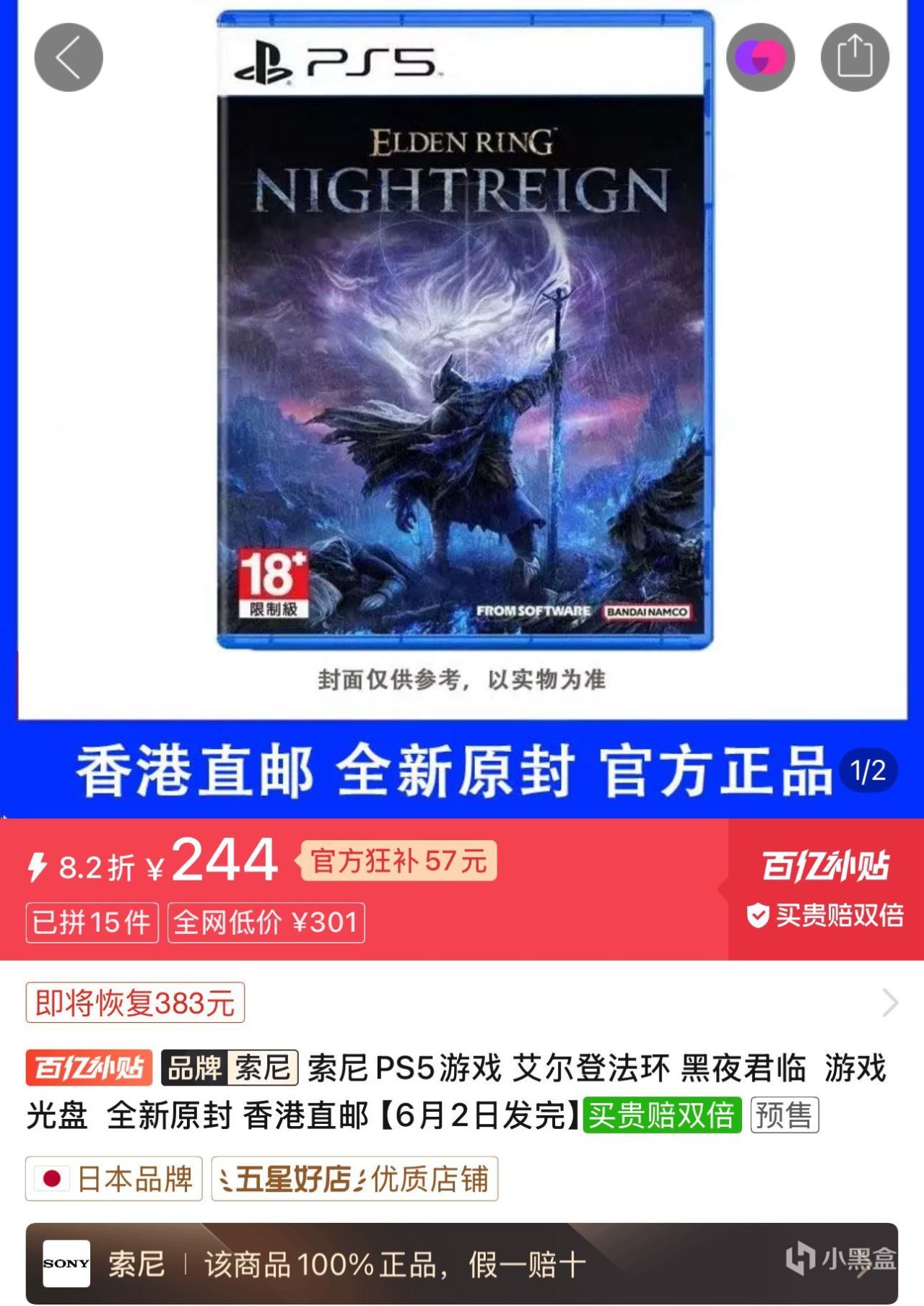 4.PS5遊戲《艾爾登法環:黑夜君臨》港版中文244元全新包郵,該作目前處於預售狀態,商家表示6月2日發完,作爲艾爾登法環系列最新作品,屬於網絡聯機遊戲,所以價格方面應該還有下降空間,畢竟索尼聯機需要PS+會員資格且不菲,不急的玩家可以等到200元以下再買。