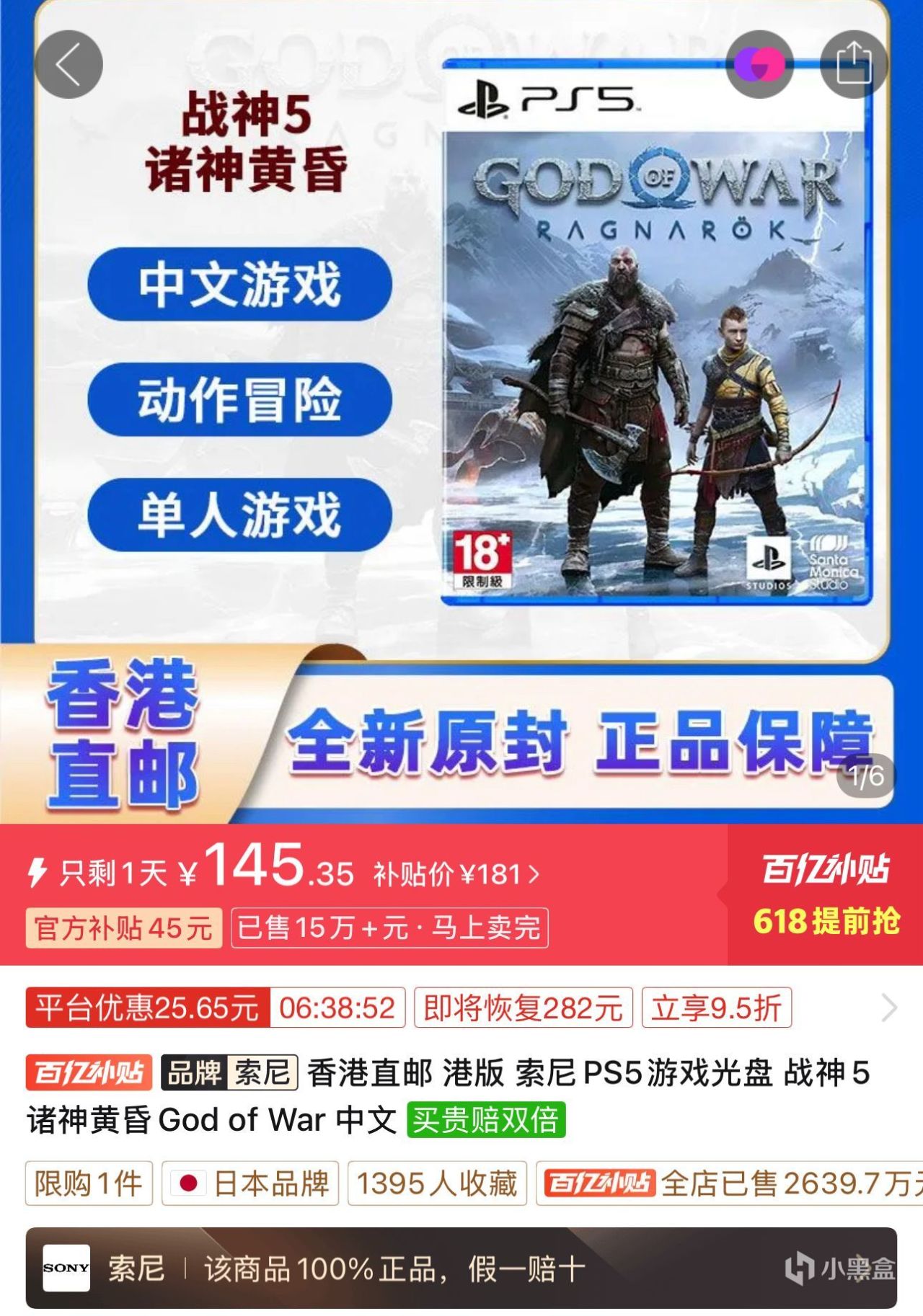 3.PS5遊戲《戰神5諸神黃昏》港版中文145.35元全新包郵,價格已經趨於穩定了,應該是該作全新PS5實體版最低價格,想要收藏PS5實體碟或者剛入手PS5新玩家推薦購買,索尼第一方3A全新大作150以下怎麼買都不虧。