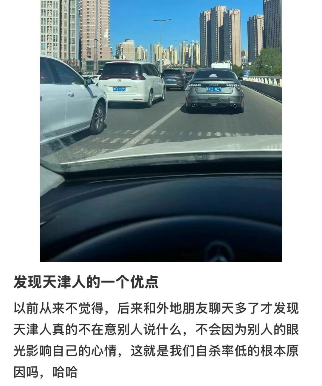 交警蜀黍坐在大姨的豪华后座;“才知道天津这个地方,多少沾点说法。”