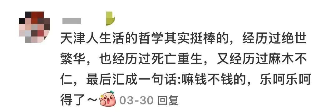 “在天津,你可以没有钱,但不能没有活儿。前有天津大爷们把海河跳成了景点,后有盘头大姨把地铁走成了T台,整个城市都弥漫着一种不顾他人死活的松弛。”
