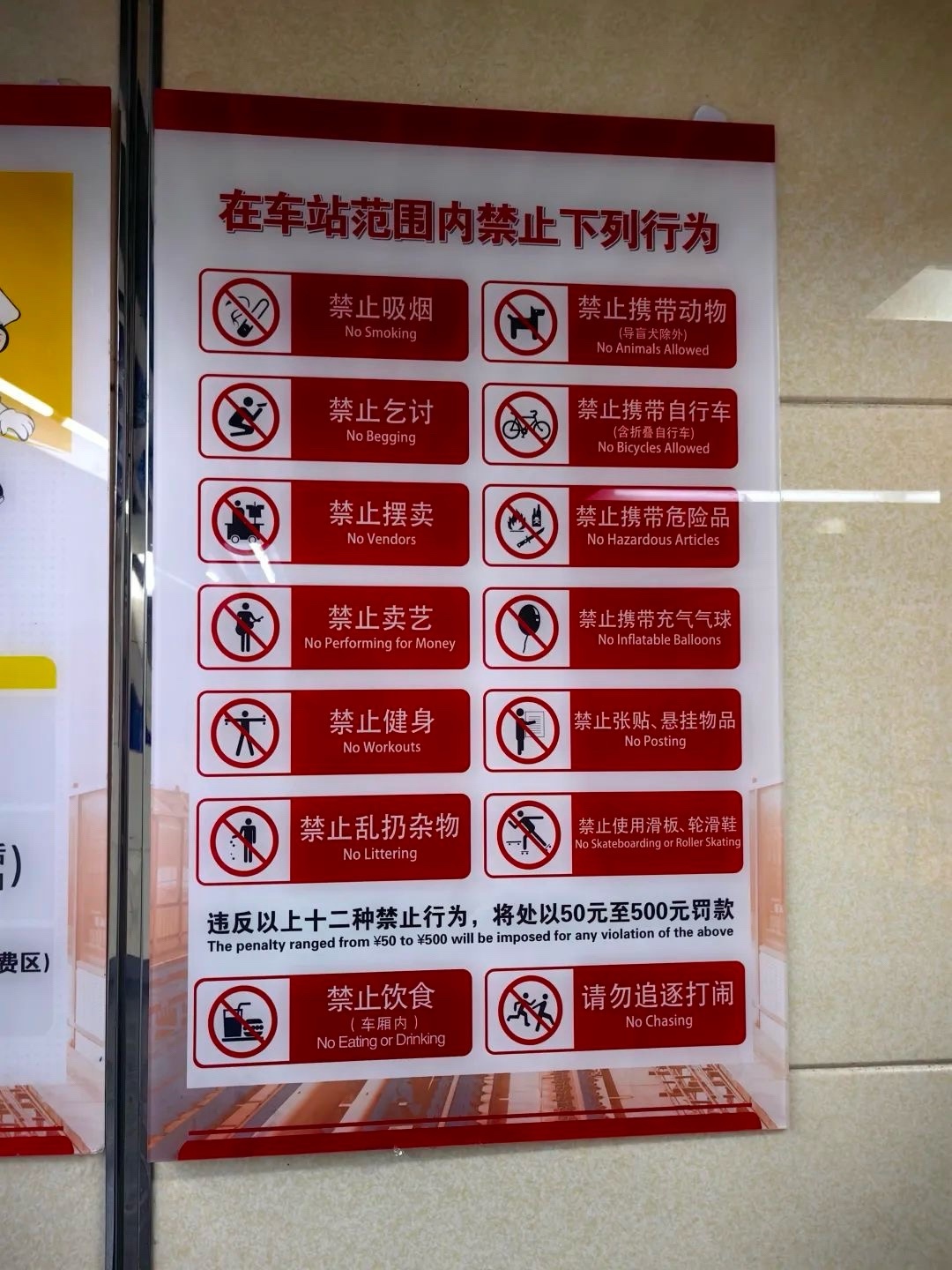 以及地铁指示牌的14种禁止项目