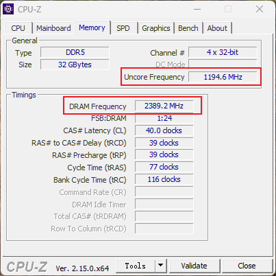比如託尼現在用的這臺電腦,點開 CPU-Z,可以看到內存頻率剛好是控制器頻率的 2 倍,這就是所謂的"內存分頻"。