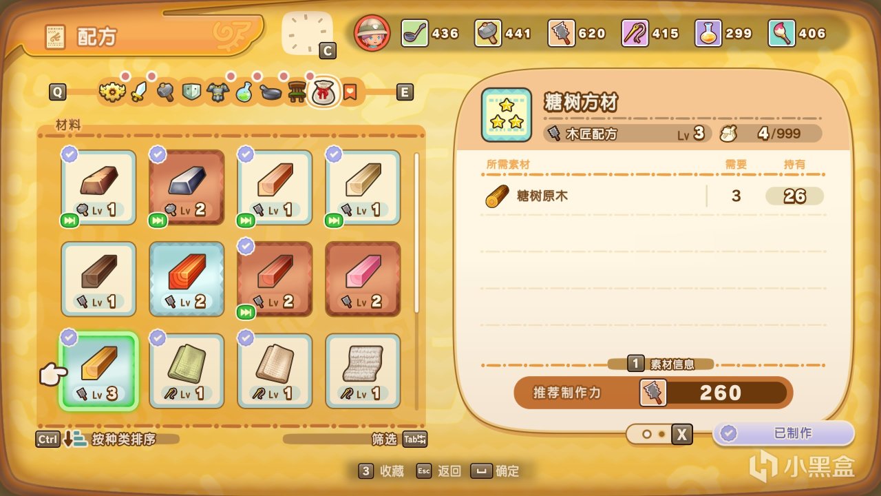 這個就略過感覺都沒問題了,如果你發現自己有糖樹原木,但是不能製造,就去升級一下木匠的階級,就會解鎖了!