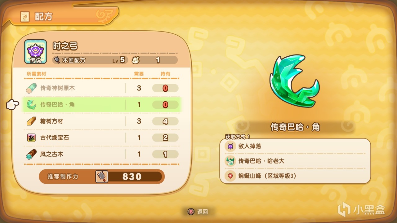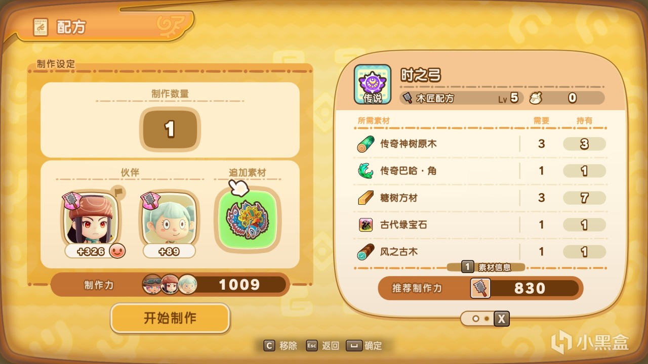 製作力在900往上可能輕鬆一點,注意培養一下夥伴,加成挺大的,方便完成製造!你製造完時之弓以後,可以前往無垠大陸的村落,看到這個豹子,你和它對話他就會給你【真時之弓】的配方!