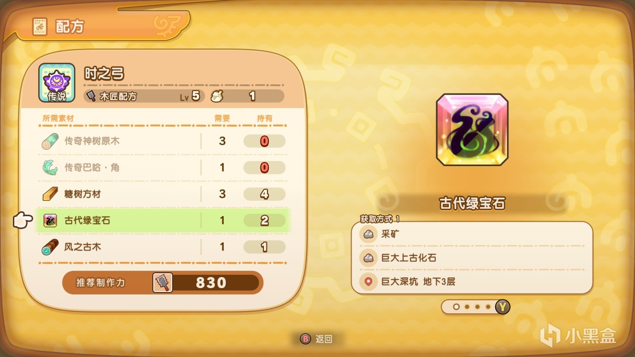 古代綠寶石是在巨大深坑的那種帶皇冠的大石頭打了掉的素材,雖然看着簡單,但是進去那個地方會有障礙物,所以我前面寫了需要 【採礦&砍樹&農夫600能力值+50級以上】。