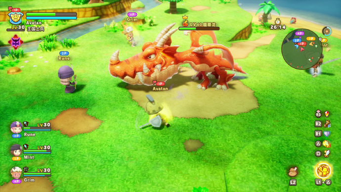 在战斗方面,本作的玩法比较容易理解,并且打击感还相当有力,只要你掌握冲刺、闪避、普通攻击、蓄力重击以及需要消耗体力的必杀技这几个基本指令,就可以轻松上手。不过请记住一件事,本作虽然有自由设定的快捷道具栏,但是在使用道具时角色并不会处于无敌状态,所以除了灵活运用不同战斗型职业的能力以外,如何运用队友或佣兵来进行相互配合也是显得尤为重要——虽然话是这么说,但很多NPC队友主要作用在于和职业相关的采集工作,论打架水准就实在不敢恭维,如果你不愿意指望他们,喜欢追求自身搭配神装的强大战斗力,还是多和朋友一起联机下副本迷宫刷素材比较来得实惠。