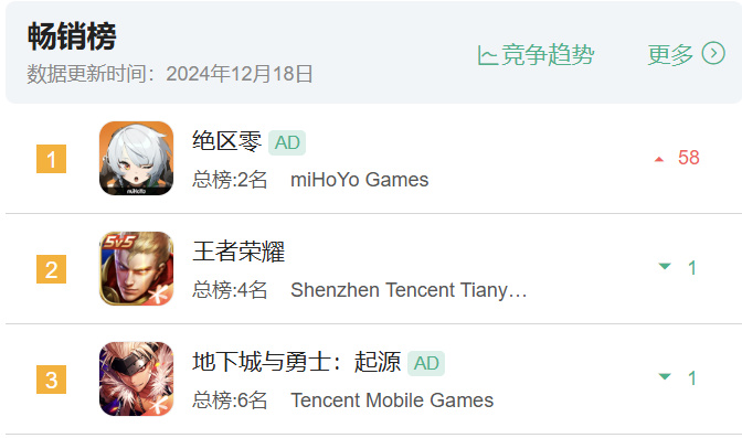《绝区零》1.4版本当天登顶iOS畅销榜