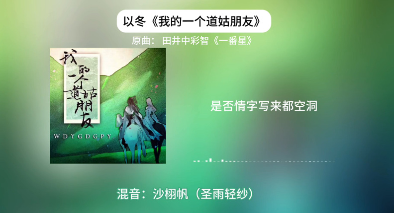 比如“沙栩帆-聖雨輕紗 “,曾爲過舊版《起風了》,以及《我的一個道姑朋友》《錯位時空》混過音。讓不少人驚呼,“你纔是最適合做這個視頻的人”。