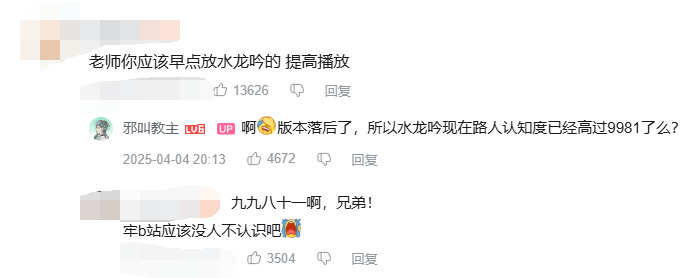 再比如“邪叫教主”,《九九八十一》與《萬神紀》的詞作者。而這位最近知名度最高的作品,應該是來自遊戲崩壞星穹鐵道的《水龍吟》——其知名度高到不少人調侃,爲啥不把這首歌放在最開頭。
