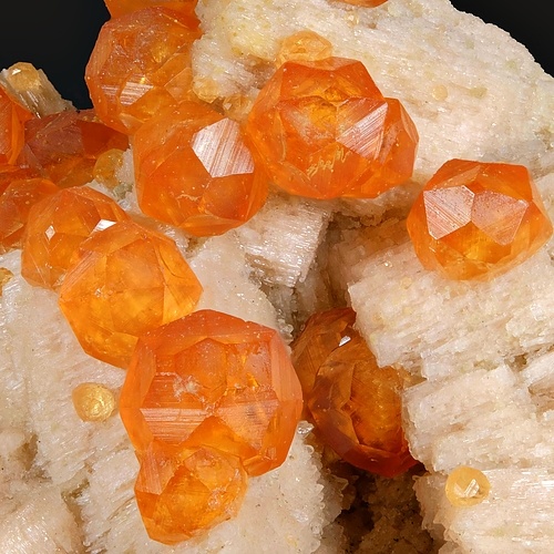 它们的颜色丰富多样,涵盖深红、橙黄、绿、紫、黑等色彩,其中的铁铝榴石和铬钒钙铝榴石(沙弗莱)尤为珍贵。莫氏硬度在6.5-7.5之间,玻璃光泽至树脂光泽,常见于变质岩和火成岩中。